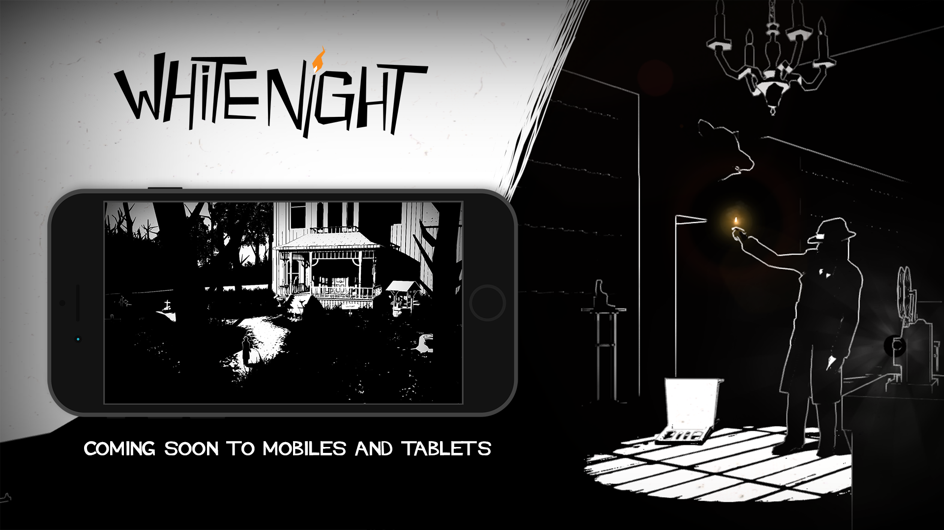 White Night is a narrative survival horror game that takes place in the noir-era of the 1930’s. Unique with its 3D black and white graphics and its eerie ambiance, White Night stands at the crossroads of fantastic literature, cinema and video games. After its successful original release on PC and consoles. In America’s early thirties, explore the macabre past of an old family manor by solving puzzles of light and shadows. From the fragile light of a match to the life-saving mystical moonlight, your path will be scattered by fear, and death. The game is now coming to mobiles and tablets with a brand new version that features revamped controls, an adjusted saving system and an overhauled interface.